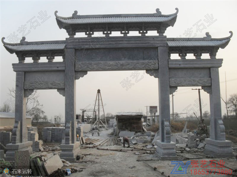 2010年给陕西富平仇老板自家的石雕厂竖立了一座青石三门三帽石牌坊样品,同年石牌坊被当地蒲城县的敬母寺村委人员所看重并成功签约,仇老板委托咱们公司制作与安装。